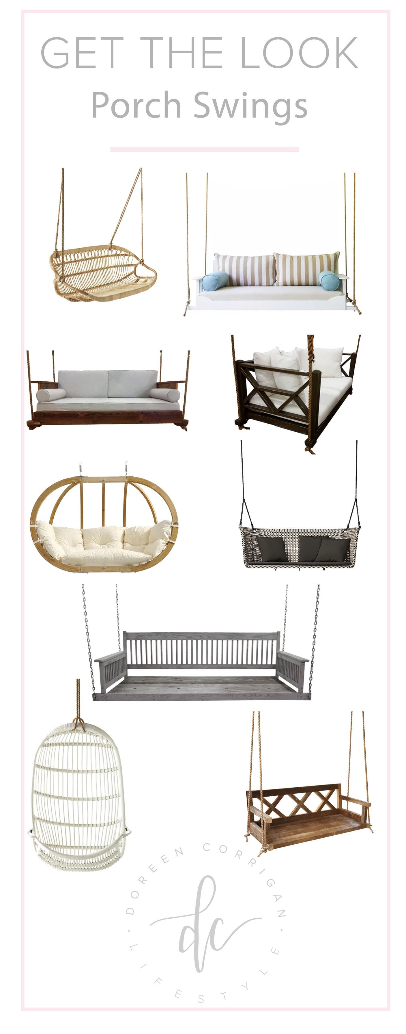 With Spring in full swing, I am featuring porch swings in my weekly round up! Porch swings are a great way to add a touch of charm and playful aesthetic to your porch as well as relax and take in all that is summer! Porch swings have been around for a while, but have recently started trending again. From traditional to boho to modern and everything in between, there is a swing to fit every home style. Some porch swings are traditional with a back and others are more like a hanging bed. In choosing a porch swing, it is best to decide on what size space you want to fill. The more traditional swings don’t take up much room but if you are looking for more of a statement swing or day bed, there are plenty of those styles to choose from as well. I have been on the hunt for the perfect porch swing to add to our front porch. I can’t wait to show you the swing once it is installed and styled. In the mean time, I have rounded up some of my favorite swings as well as some photos to inspire you to get the look!