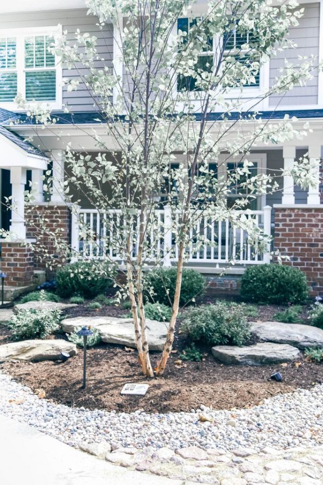 This is a Riverbirch Tree. They naturally grow near river banks as the name suggests, but are excellent for planting almost anywhere in the U.S. They boast graceful, drooping limbs and have leaves that are the perfect shade of green. I’m obsessed with the flaky bark branches.
